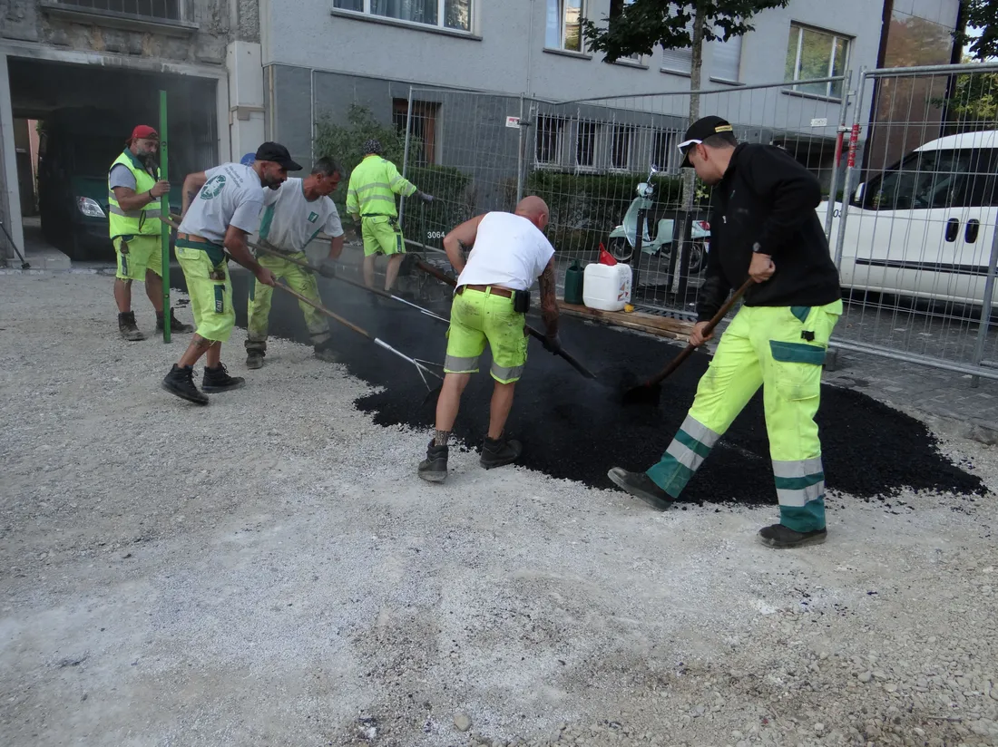 Mitte August 2025 wurde der Vorplatz vom Aeschengraben 15 asphaltiert. Das Gelände wird so für die bald anrückenden schweren Baumaschinen planiert und geebnet.